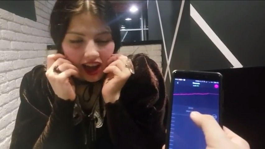Русская милашка развлекается с вибротрусиками в ресторане