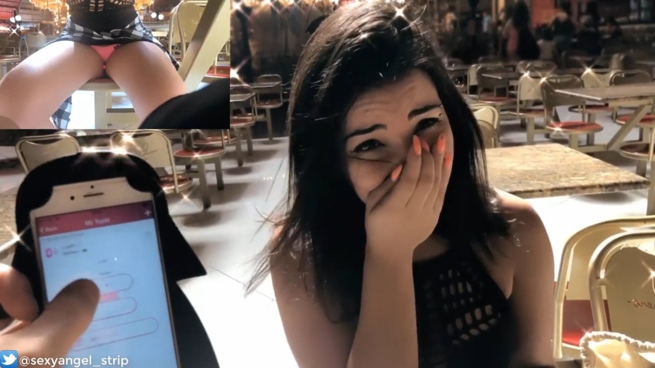 Русская милашка развлекается с вибротрусиками в ресторане